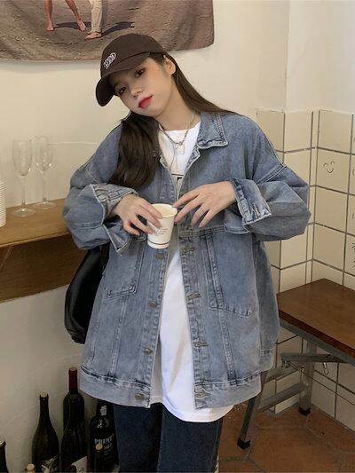 デニムジャケット 韓国ファッション カーディガン ゆったり デニムコート アウター 長袖 デニムコート