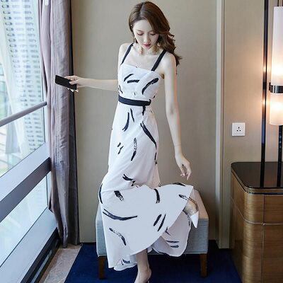 ミッドレングスモデル 夏の女性 2024 新作ワンピース スリムノースリワンピ ウエストの妖精キャミ ワンピース