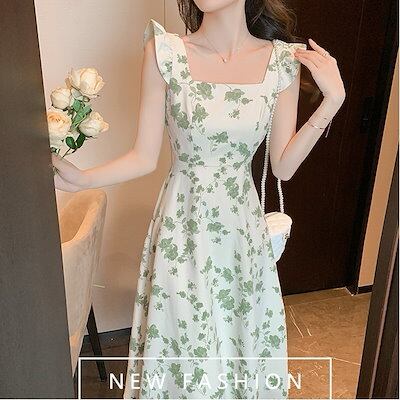 新しい夏2024ホルタードレス レトロでロマンチックなウエストの細いホルタードレス ニッチデザイン花柄ドレス潮キャミソール ワンピース