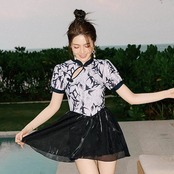 ワンピース水着女性 レトロなスタイルの修正チョンサム気質水着 腰の細い保守的なスプライシング新しい中国のファッション水着女性