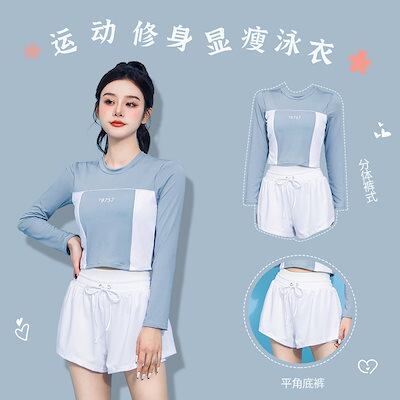 スプリットスポーツ水着 女性の長袖日焼け止めスリムツーピースセット 休日水着学生スパ水着