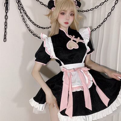 新年中国風メイド服 コスプレ新中華服 くり抜きドレス かわいいメイド服セット