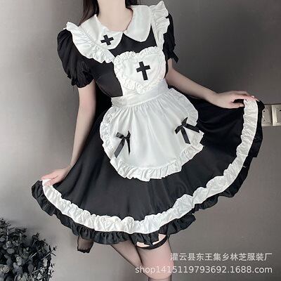 日本のクラシックアニメ メイドドレス 十字架ナースロールプレイドレス メイドレストランの制服女性のためのピンクと白のドレス