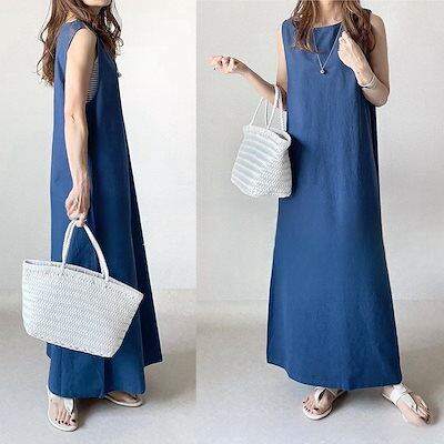 ワンピース レディースきれいめ 膝丈ワンピース デニムワンピース 春 夏 ノースリープワンピース オシャレ韓国風 大人 ゆったり 30代 40代 着痩せ