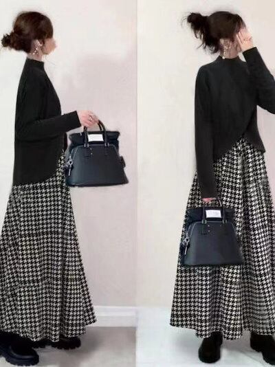 2点セット セーター 千鳥格子半身スカートスーツ レディース スカート 秋冬 ロング レディース デザイン感 ボトムス 着痩せ ゆったり 気質 大人