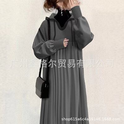 プリーツワンピース秋冬プリーツスカートきれい長袖レディースロングスカートスリムおしゃれカジュアルワンピース
