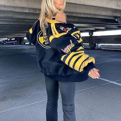 コート長袖パーカースポーツ風イエローブラックプリントカジュアル長袖パーカー機関車ジャケット2024秋冬新作 韓国風