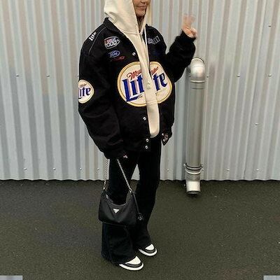 長袖パーカージャケットゆったり長袖パーカースポーツ風ブラックプリントカジュアル韓国風 通学ファッション 長袖パーカー 通学
