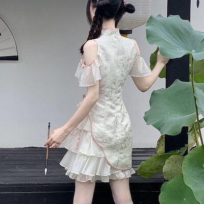 夏新作 改良 チャイナドレス 小柄な人 不規則 スリミング Aラインスカート チャイナ風 ショート丈 半袖ワンピース