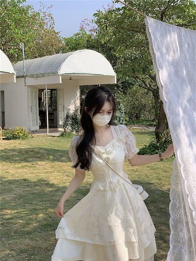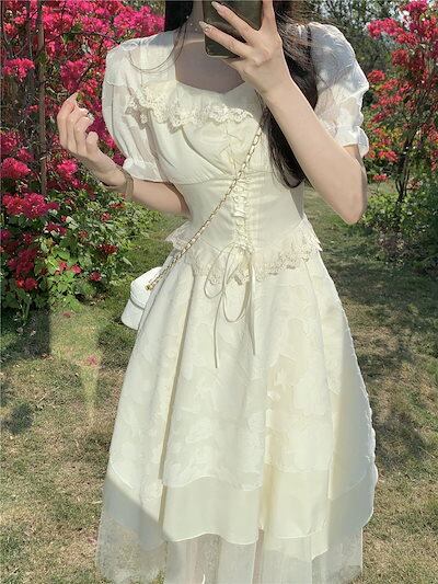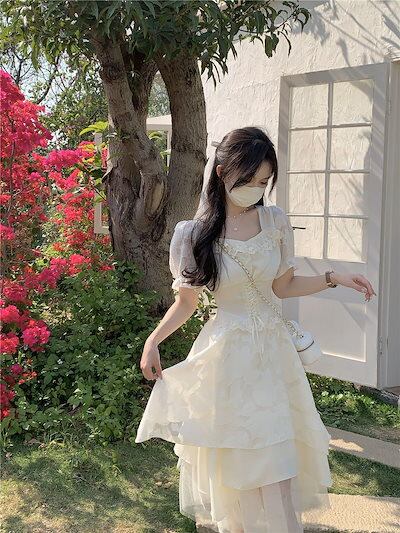 夏新作 フランス 気質 スクエアネックワンピース 着痩せ レディース スリミング 着痩せ プリンセスドレス 半袖