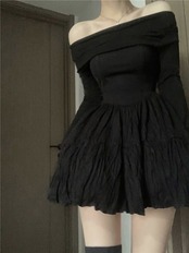 ブラック ウエスト引き締め ワンピース ボートネック ドレス レディース スリミング 着痩せ ミニワンピース