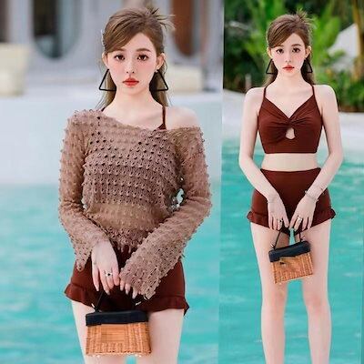 水着 2024 新作 ビキニ セクシー ブラウス着 温泉水着 涼しく楽ちんセットアップ 着痩せ 水着 韓国