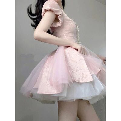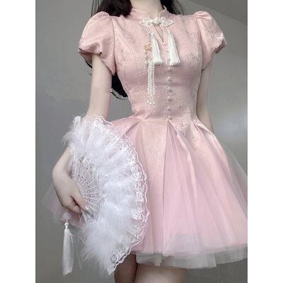 チャイナ風 ワンピース セクシー 着痩せ スリミング 改良 チャイナドレス 新品 フリンジ プリンセススカート パーティードレス