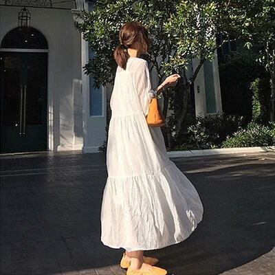 フレンチヴィンテージ ワンピース 韓国 ゆったり 着痩せ シフォンドレス セミロング Tシャツワンピース 半袖 マキシワンピース