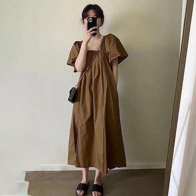 オーバーサイズ レディース服 ワンピース 高級感 着痩せ バブル袖 ロングドレス ゆったり 半袖ワンピ Tシャツワンピース