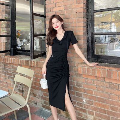 セクシー ギャル フード付き ワンピース レディース 新しい スリミング ロングドレス スリット Tシャツワンピース