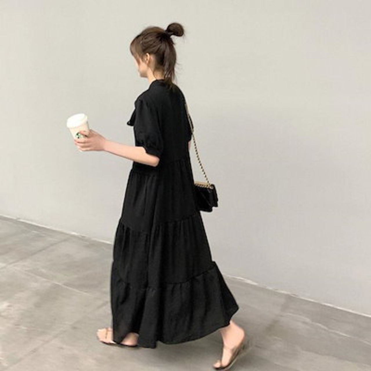 夏新作 半袖 ワンピース 韓国 ゆったり 着痩せ ロングドレス 学院風 Aラインスカート Tシャツワンピース