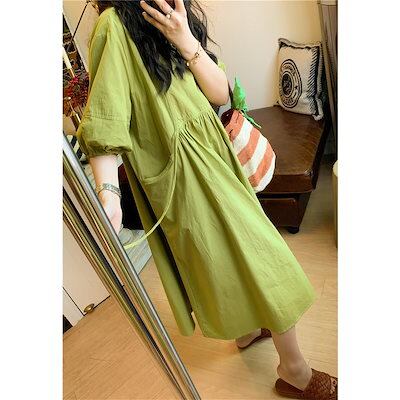 コットン ワンピース サマー ゆったり 大きいサイズ ロングドレス レディース カジュアル Tシャツワンピース