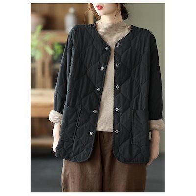 高級な質感 キルティングコート レディース 綿入りコート ノーカラー ジャケット 厚手 パーカー カジュアル アウター 秋服 秋コーデ ビジネス 春秋 冬 ゆったり 通勤