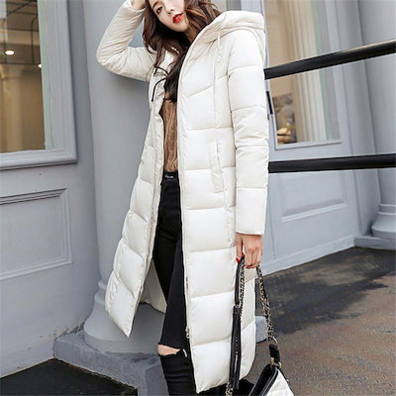 人気商品超目玉 ダウンコート レディース 中綿コート 中綿入り ロング丈 フード付き ジップアップ 冬服 着痩せ 暖かい 防風 防寒 ジャケット 保温 キルティングダウン