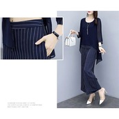 セットアップ レディース トップス ガウチョパンツ 2点セット ストライプ柄 体型カバー 前後差 ゆ