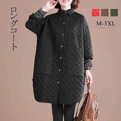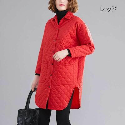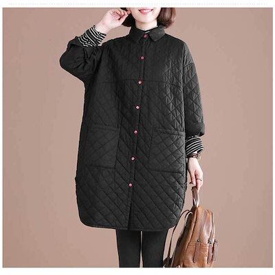 大人の魅力 キルティングコート コート ロングコート 秋冬 ジャケット レディース ロング丈 長袖 無地 折り襟 ボタン ゆったり 体型カパー アウター カジュアル風