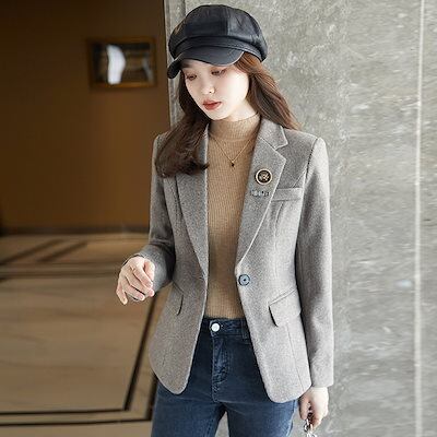 大人の魅力 テーラードジャケットレディース秋冬服 フォーマルジャケット チェック柄 長袖ジャケット アウター ビジネス 40代50代通勤 飲み会 大きいサイズ 上品