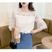 半袖ブラウス シフォン レディース レース花柄 トップス きれいめ 丸首 気質 淑女 デート 着痩せ シースール セクシー 韓国風 夏秋新作 ブラック ホワイト