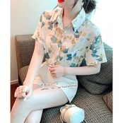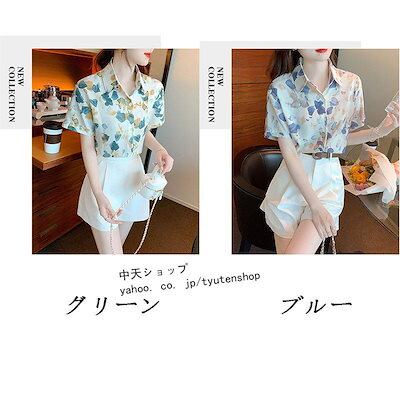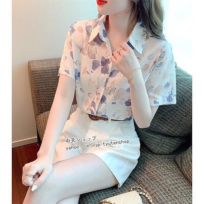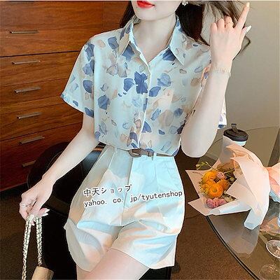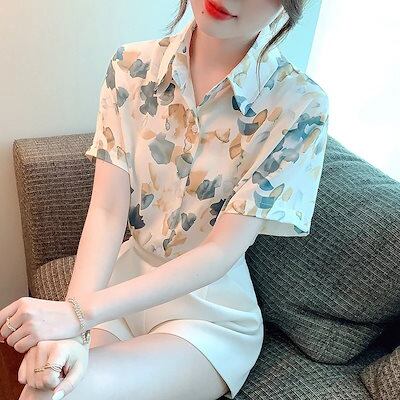 シャツ レディース 半袖ブラウス シフォンシャツ 30代40代 トップス 薄手 折り襟 ゆったり カジュアル おしゃれ プリント柄 きれいめ 韓国風 上品 気質