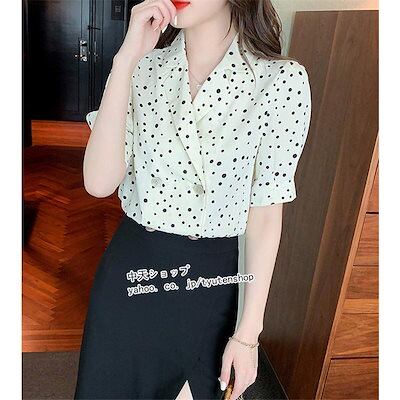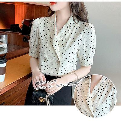 ブラウス シフォンブラウス トップス レディース 夏秋 シフォンシャツ 半袖 ドット柄 折り襟 ボタン 通勤 OL 着回し 30代 おしゃれ キレイめ 新作