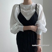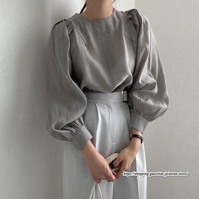 新入庫 パフスリーブブラウス レディーストップスシャツ 長袖 春夏服 透け感 丸首 フリル プルオーバー 長袖ブラウス シャツブラウス オフィス 大人 卒業式 入学式 20代 | OPEN-korea