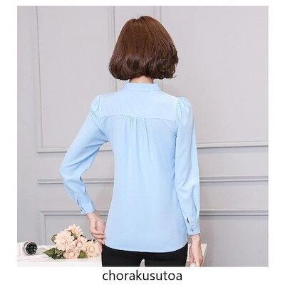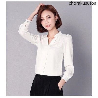 シャツ ブラウス レディース 春 長袖 Vネック 無地 着痩せ おしゃれ 上品 通勤 OL オフィス 白シャツ シフォン 30代 40代