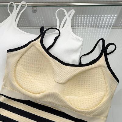 2024 人気 カップ付きインナー ストライプのチョッキで身を修めてノーブラのに底をつけた キャミソール タンクトップ ヨガ 美背 レディース