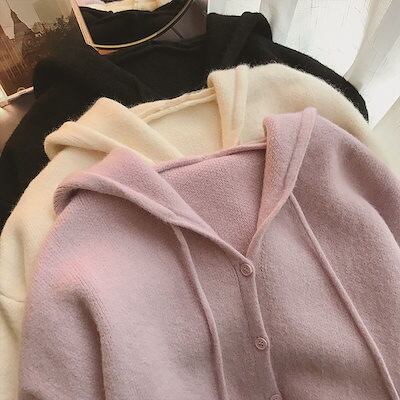 【 3日出荷 】カーディガン 2024 秋新韓国 ニットカーディガン 百掛け 純色連帽パーカーニットカーディガン秋のゆったり長袖セーターケープコート レディースファッション