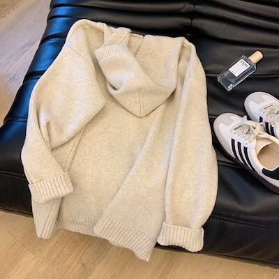 【 3日出荷 】カーディガン 2024 秋新韓国 ニットカーディガン 百掛け ゆったりファスナーセーターカーディガン秋キャップニットコート レディースファッション