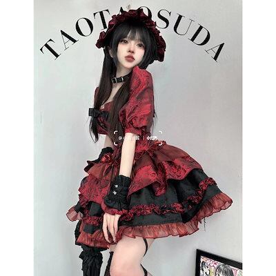 【 3日出荷 】ハロウィンコスプレ ロリータ 仮装 黒 赤 ドレス コスプレ ミニスカートセット ワンピース コスプレ レコスチューム メイド服 サンタコスプレ 文化祭 リボン ギャル クリスマスコフ | OPEN-korea