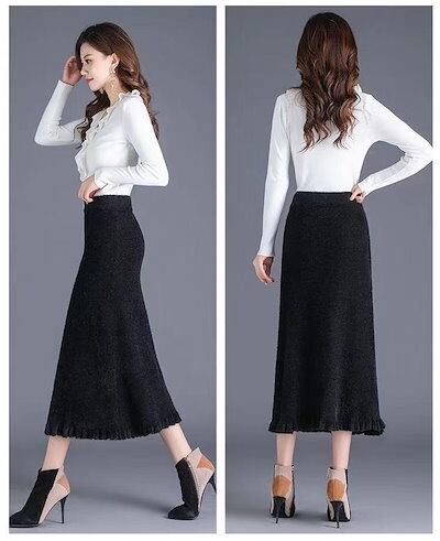 マキシスカート 脚魅せミニスカート マーメイドスカート 夕イトスカ一ト裾飾り ゴムウエスト ミディアム丈 Aライン 厚手 レディース ロングスカート ゆったり