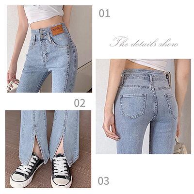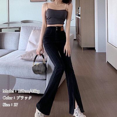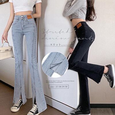 デニムパンツ レディース ジーンズ ハイウエスト デニムパンツ スリット韓国