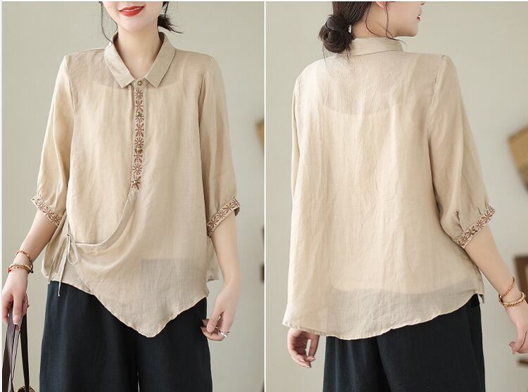 【春夏新作】ファッショントップス♪ホワイト/カーキ2色展開◆