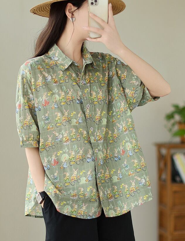 【春夏新作】ファッショントップス♪ブルー/グリーン2色展開◆