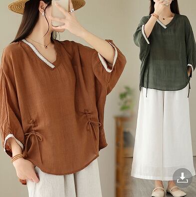 【春夏新作】ファッショントップス♪アカ/グリーン2色展開◆