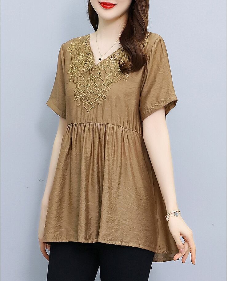 【大きいサイズL-5XL】【春夏新作】ファッショントップス♪ブルー/カーキ2色展開◆