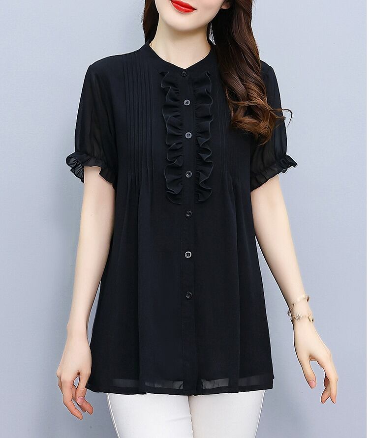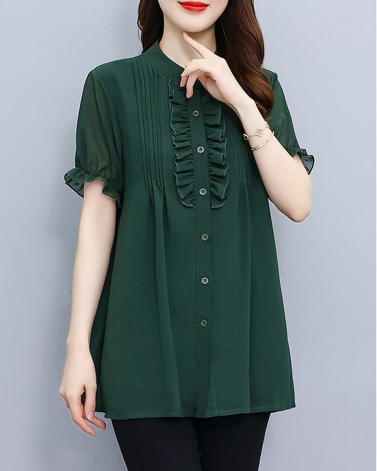 【大きいサイズL-5XL】【春夏新作】ファッショントップス♪ブラック/グリーン2色展開◆
