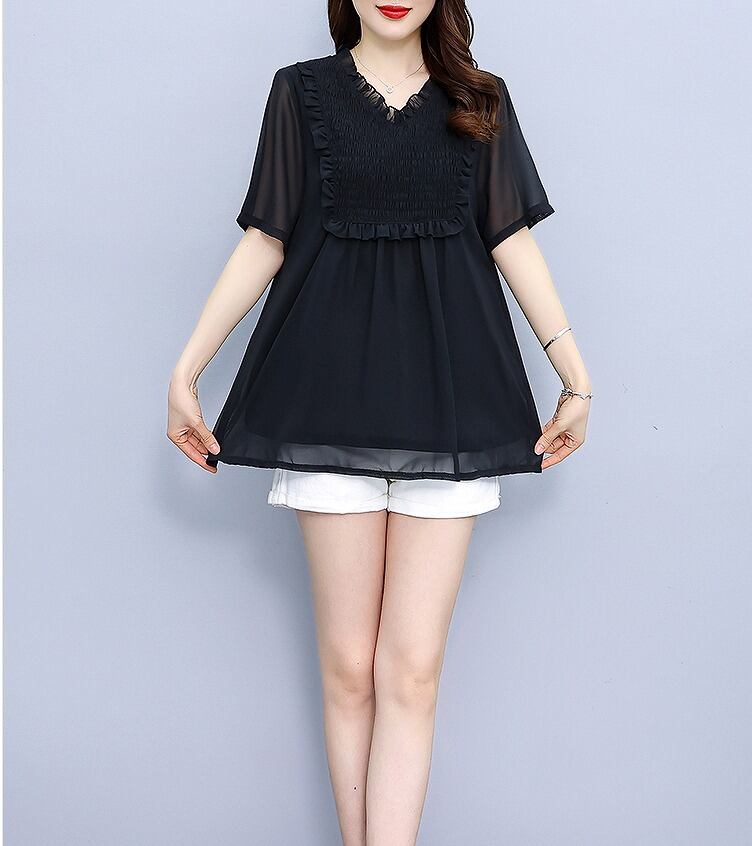 【大きいサイズL-5XL】【春夏新作】ファッショントップス♪ダークブルー/ブラック2色展開◆