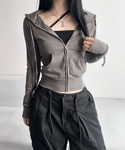 [フィットミーチム/タンタンチョンフィット]1059もちっとした スリムフィット クロップ リブ パーカージップアップ スリムフード ジップアップ トレーニング 季節の変わり目ルック 季節の変わり目ジ | OPEN-korea