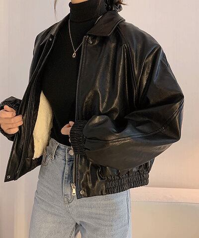 [全体ウール裏地] フェイク デイリー レザー ジャケット