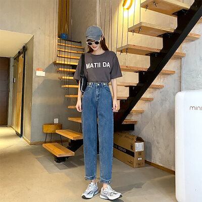 脚長効果!スキニーデニムパンツ テーパードパンツ ジーンズ女性2024春秋新作ハイウエストハーレムパンツ9分丈パンツ
