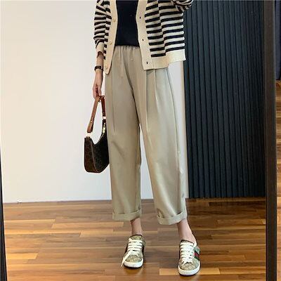 テーパードパンツ スーツパンツ女性2024春秋新作ハイウエストルーズカジュアル9分ストレートハーランパンツ
