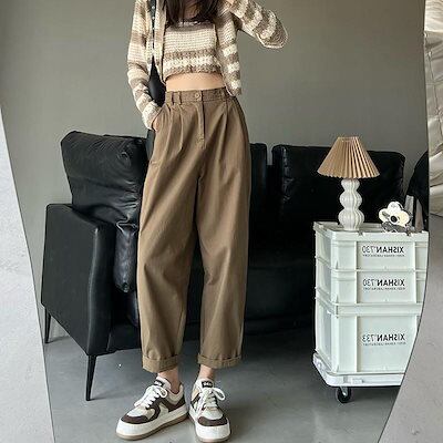 テーパードパンツ 春と秋の新作ハレンチパンツ女性ルーズストレートカジュアルワークパンツ