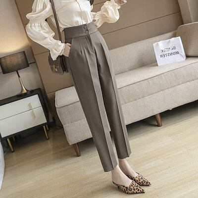 テーパードパンツ スーツパンツ レディース 春秋 ストレート ドレープ 九分丈パンツ ハイウエスト カジュアル ハーレムパンツ